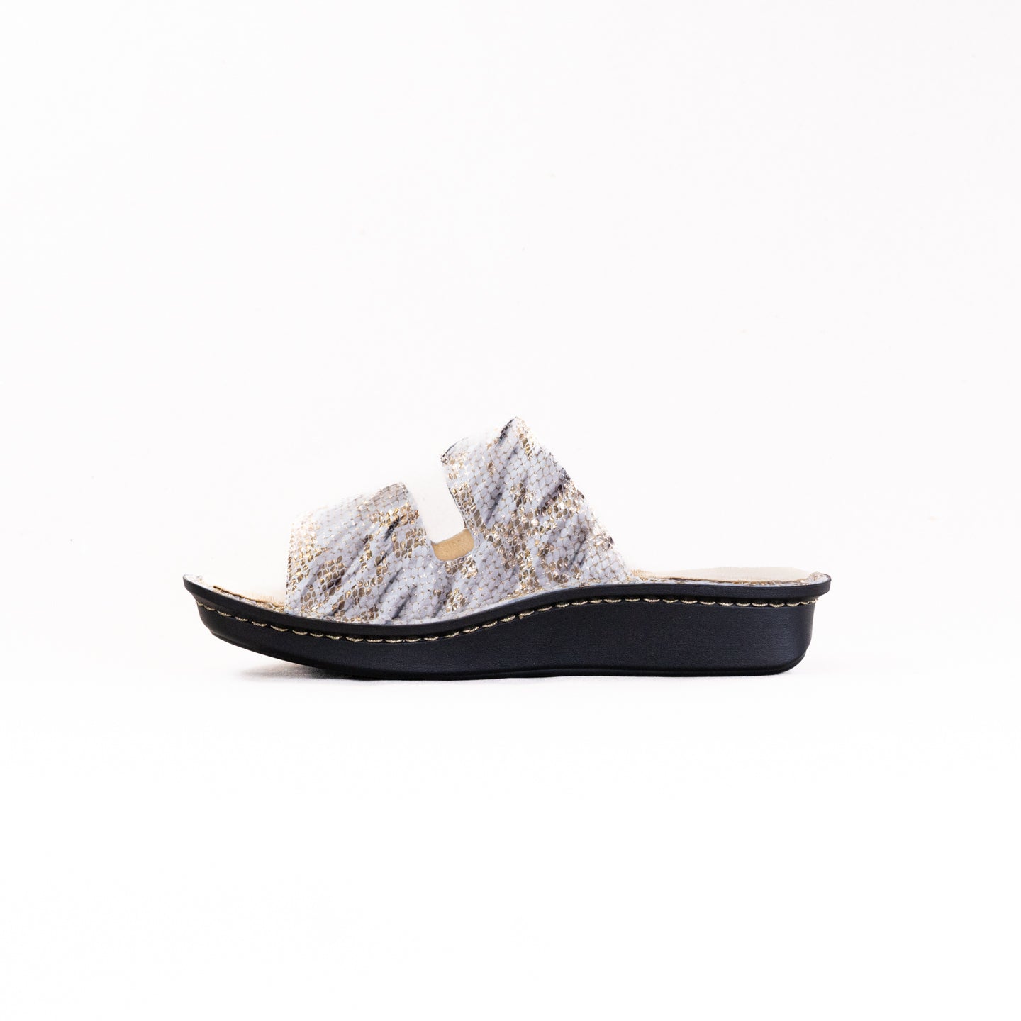 Two fully adjustable hook-and-loop straps provide a secure, customizable fit. The stain-resistant leather upper holds up to everyday use, while the removable footbed allows easy conversion from medium to wide width using the ALG-999 system.