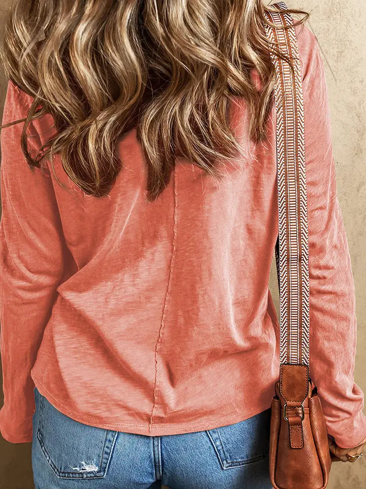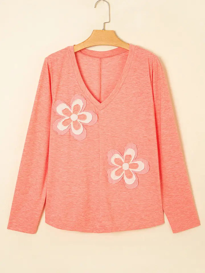 LOVESOFT Floral Patchwork V Neck Long Sleeve T Shirt