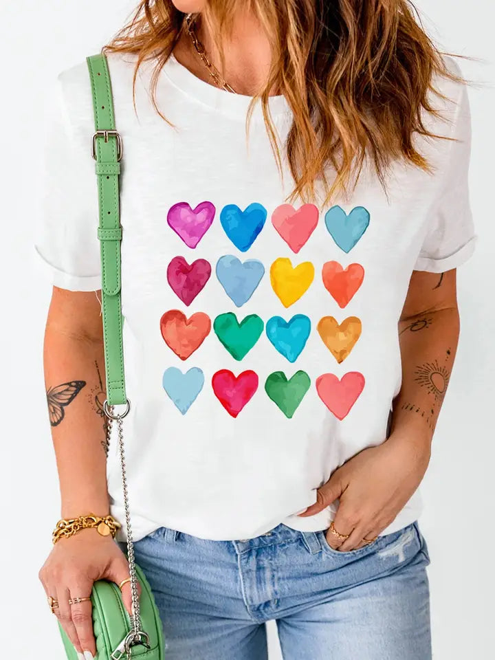 LOVESOFT White Colorful Hearts Crew Neck T Shirt
