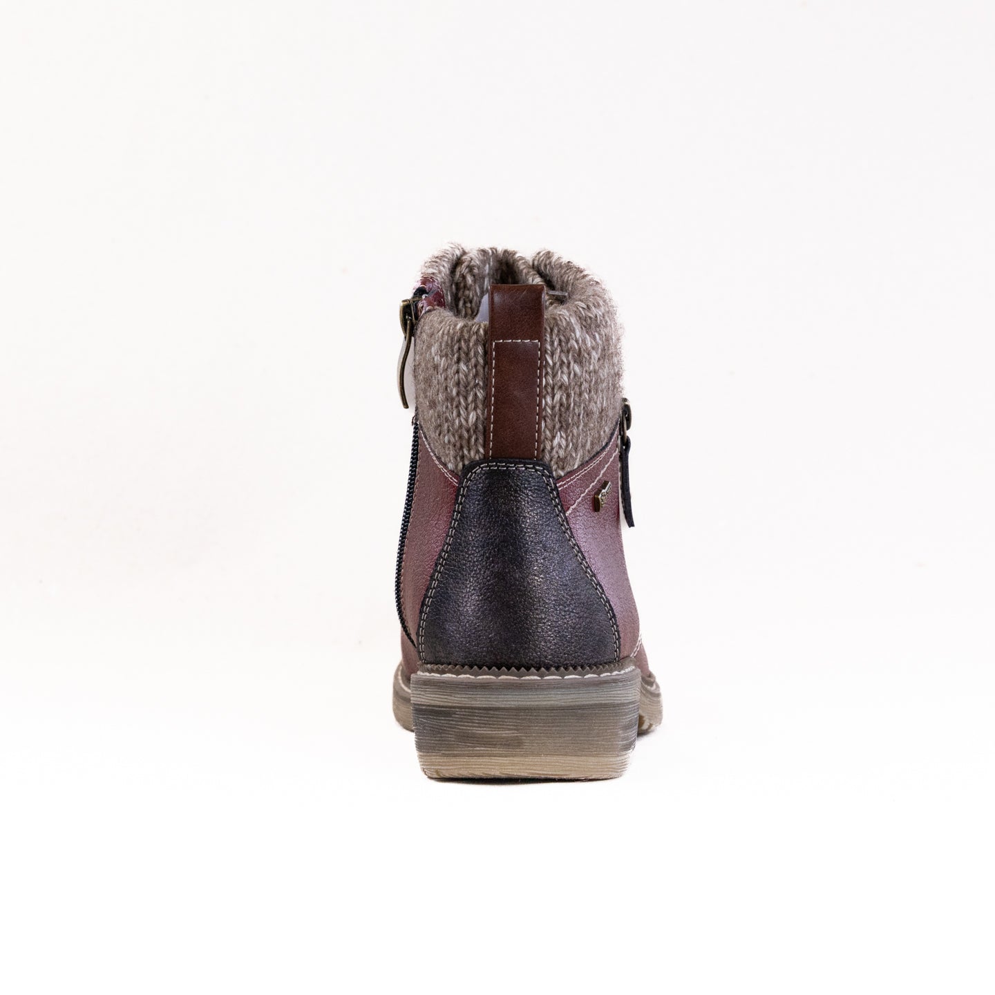 Experience the comfort revolution in this water resistant manmade leather pull-on lace-up bootie featuring a decorative lateral (outside) zipper design and an easy on/off full length inside zipper all on a chunky and sculpted heel.