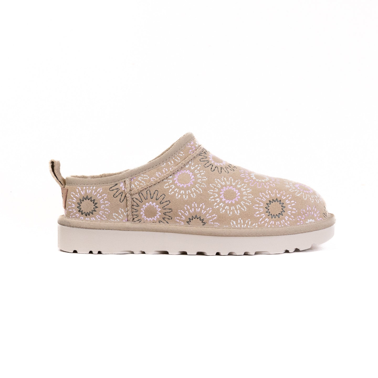 We love your sunny disposition. Our Classic Micro Sun Stitch is a reinvented version of our Classic Micro, now with our embroidered, all-over Sun Logo Shape. It's lined with mega-soft sheepskin that naturally regulates temperature, so you can wear socks—or not. The lightweight sugarcane EVA outsole delivers effortless support and adds that easy feeling to every out-of-the-house venture.